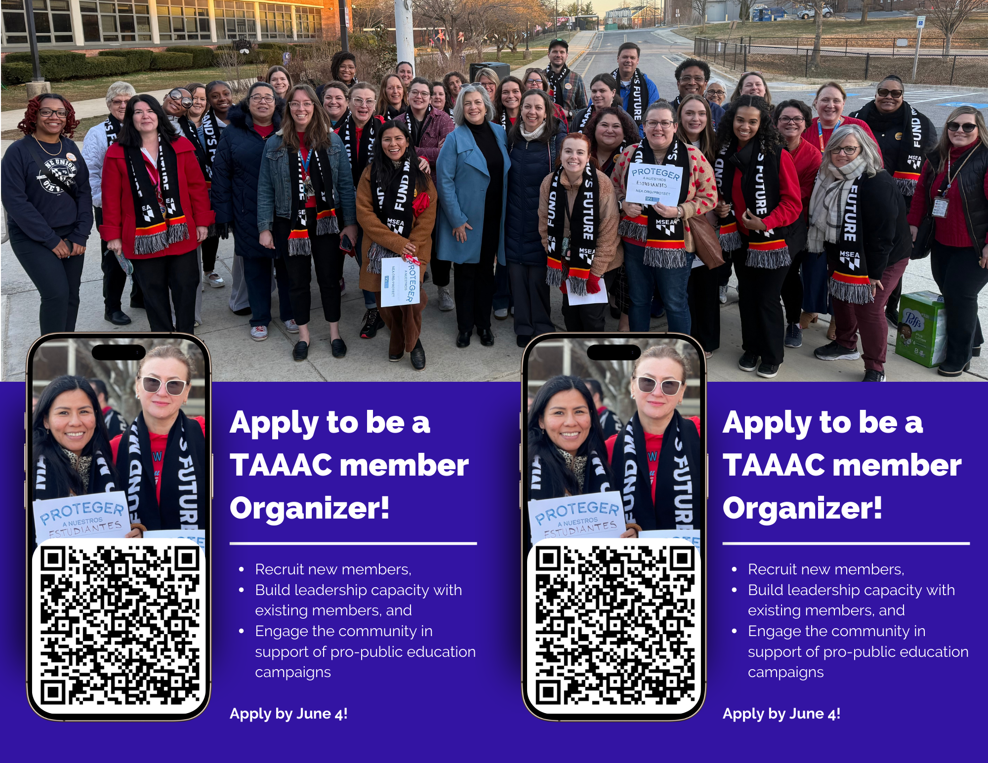 Get paid to organize with TAAAC this summer! Members receive training and take action to accomplish three primary goals: Support recruitment of new members Plan leadership development opportunities for new and returning members Receive weekly training to improve your organizing skills! The summer program will run from July 7 through August 8, and will include opportunities throughout the week (for those not participating in summer school), evening activities, plus full Friday actions and training. Throughout the school year, you will be asked to meet 1-2 times per month to plan member trainings or organize actions. There may be opportunities during the school year when we ask you to take union leave to support efforts such as negotiations, school board elections, and member recruitment. The grant(s) funding this program budget $30 per hour for each organizer position.